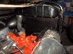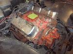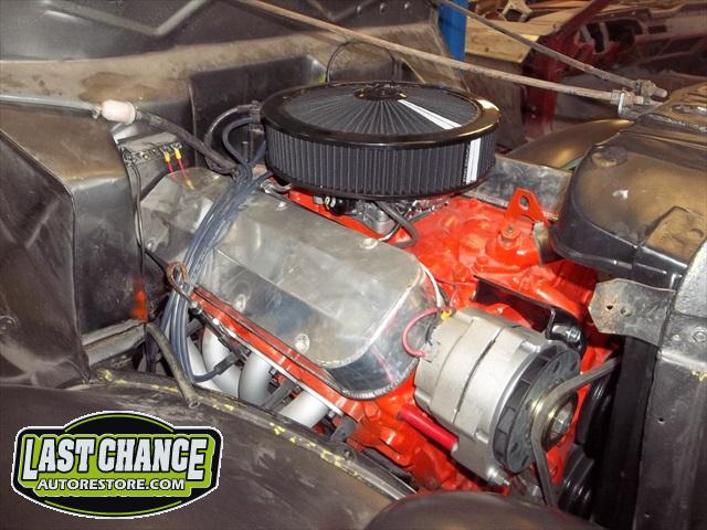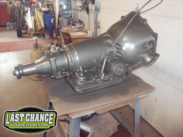 A new flywheel and starter were installed first. The engine tested out fine. The carb was removed (later replaced with a new one), the engine was cleaned up and painted. The Turbo 350 3 speed automatic transmission was replaced with an upgraded rebuilt 700R4 4 speed automatic.