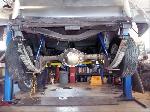 The rear leaf springs were replaced and new shocks were installed to the new mounting points that were made.