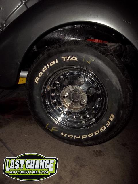 The wheels and tires that came with the car were replaced with a nice set of early 80's Crager chrome wheels with a nice set of B.F. Goodrich white lettered tires.