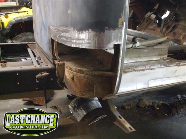 The engine was replaced with a mid 1970's rebuilt Buick V8, along with a rebuilt turbo 350 automatic transmission. The body was never repaired properly. There was spray foam found in all of the common rust areas. The interior was a nasty mice infested mess.