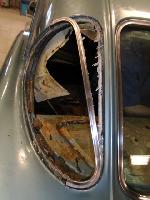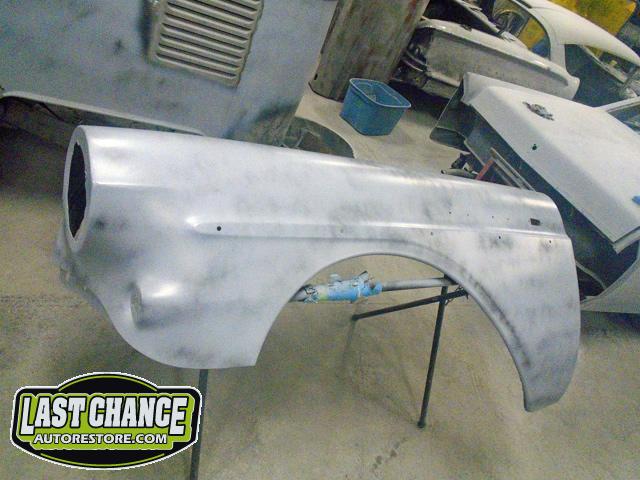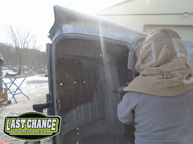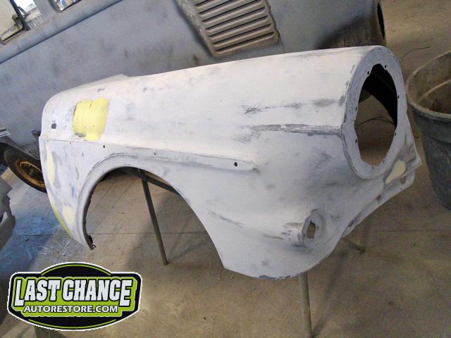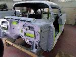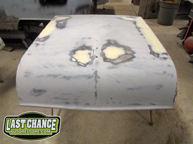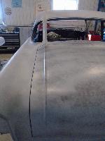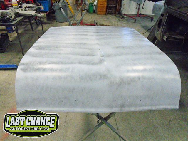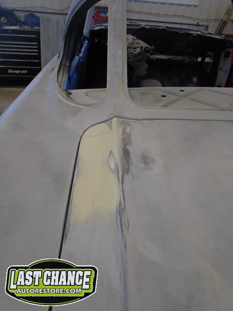 The roof and other flat panels were sanded down to bare metal. The complete body was media blasted both inside and the complete underside.