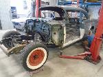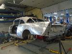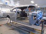 The next step was to lift the body from the chassis and carefully place it onto one of our custom made rotisseries.