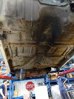 All of the body mount bolts and fuel tank, along with the exhaust system was removed.