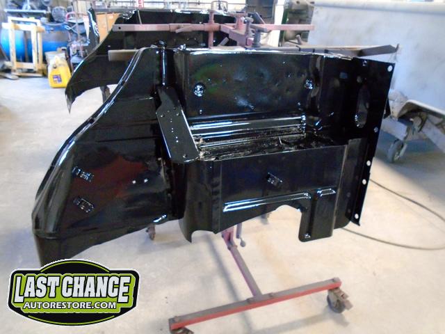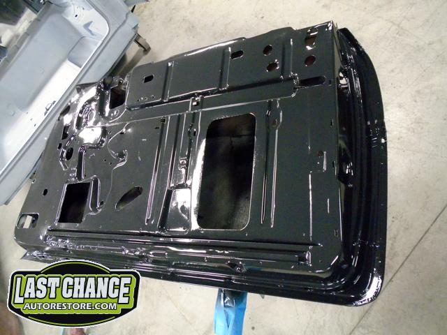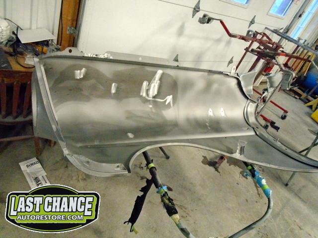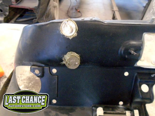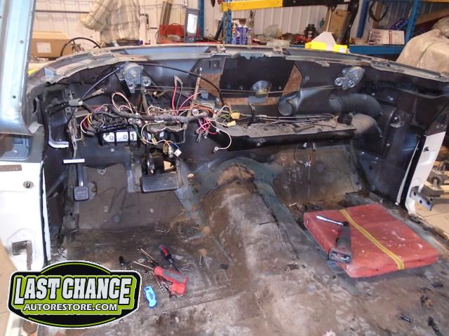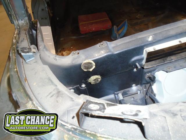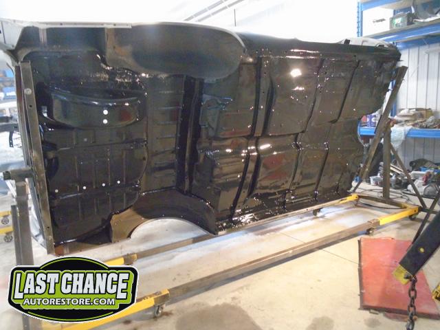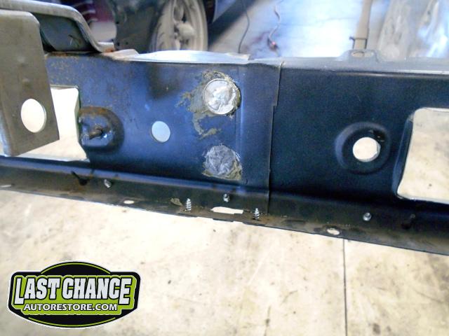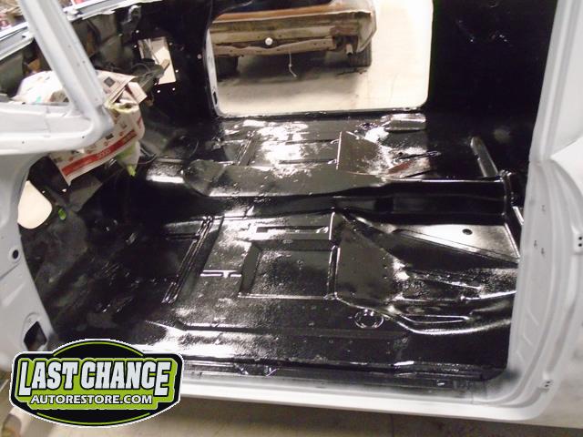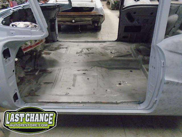 There were a few small little rust holes in the floor on the rear passenger side area that received minor weld repairs. Several factory floor tabs were welded closed and all welds were ground smooth.