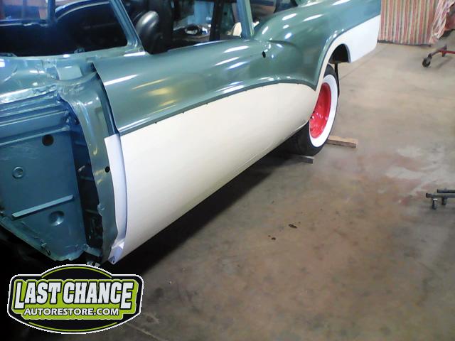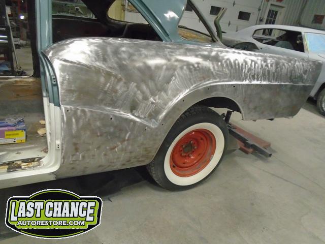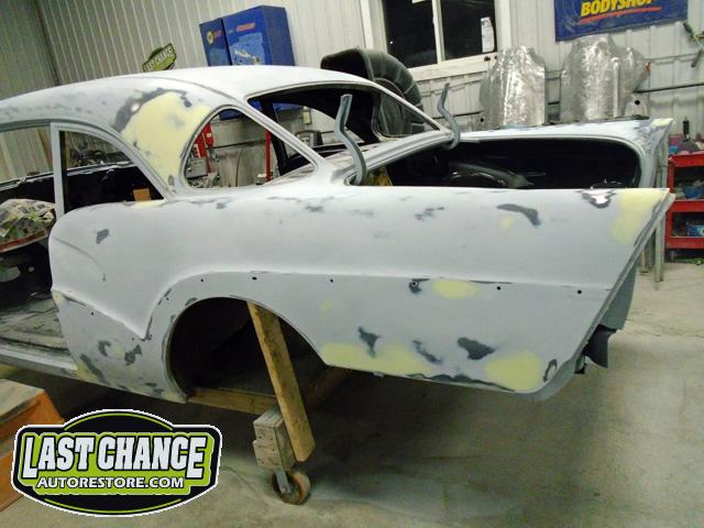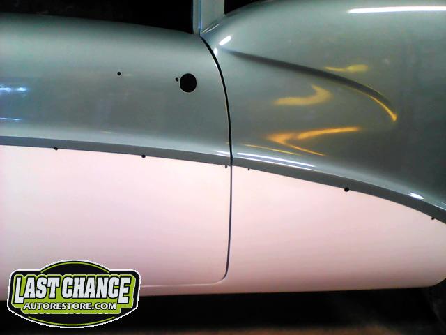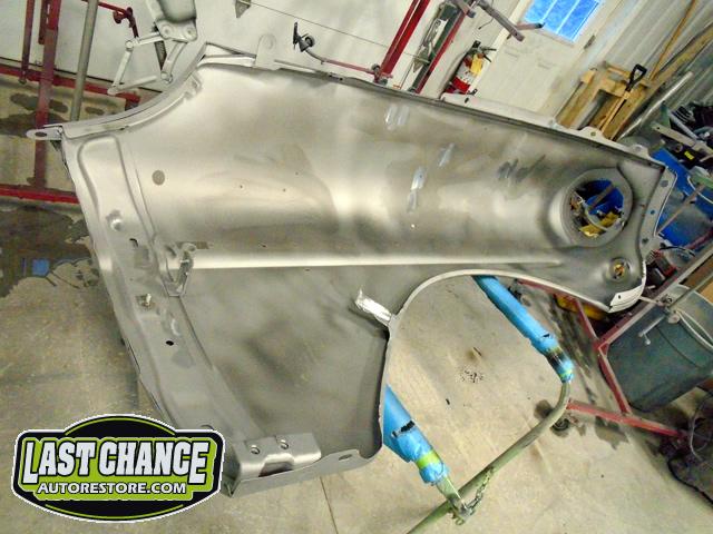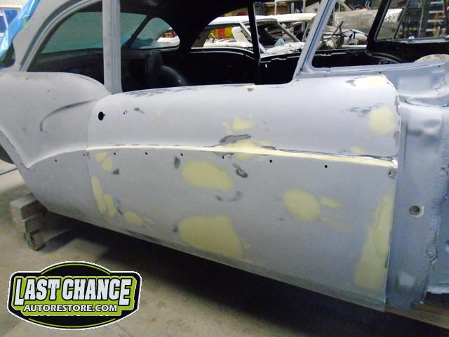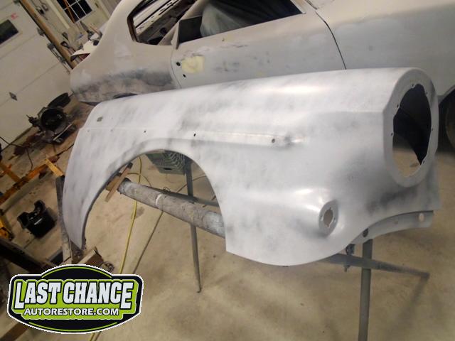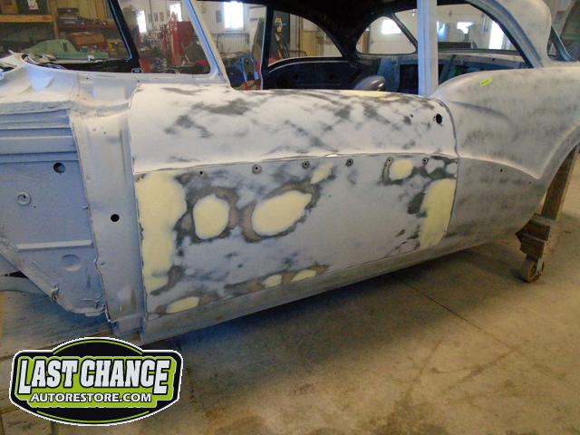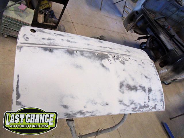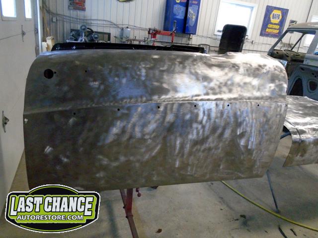 The trunk lid and both doors were dry fitted to the body and adjustment and changes for better fitment were made to the panels.