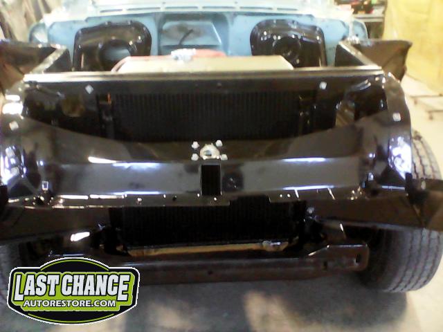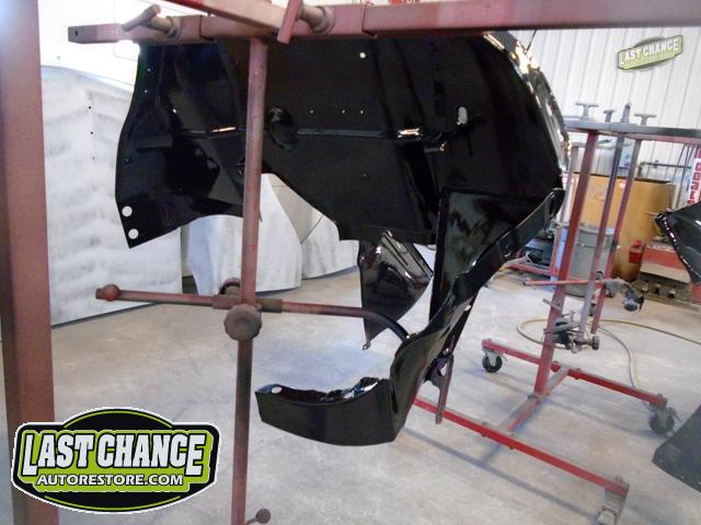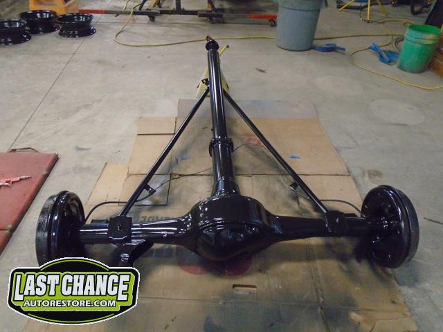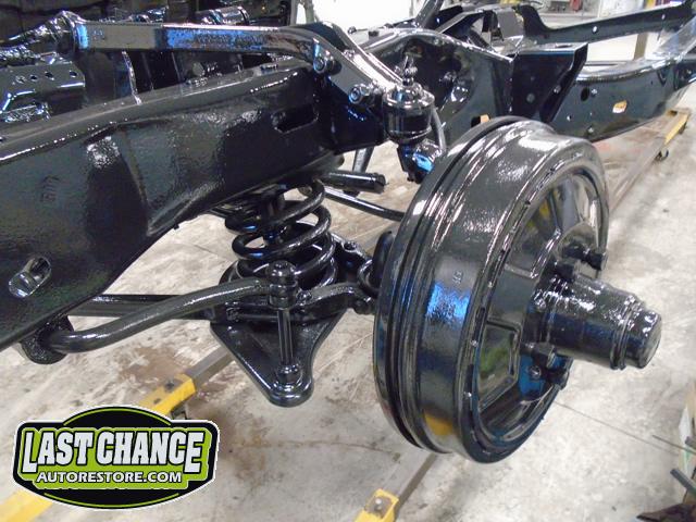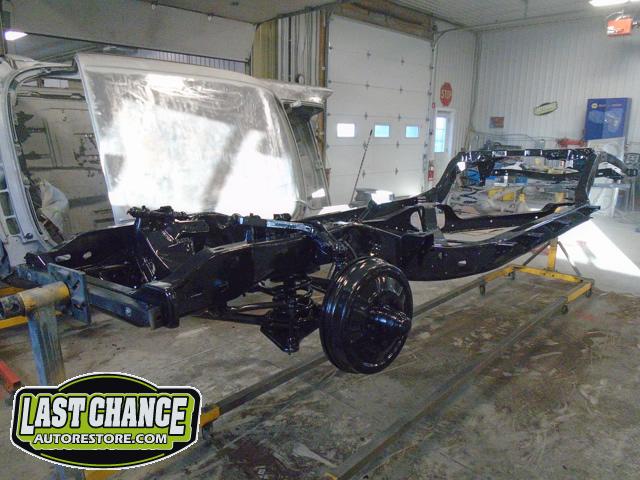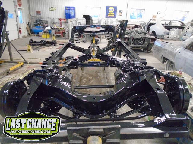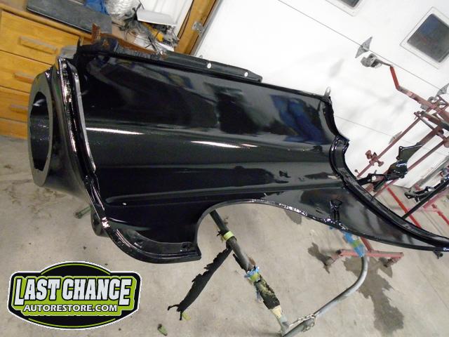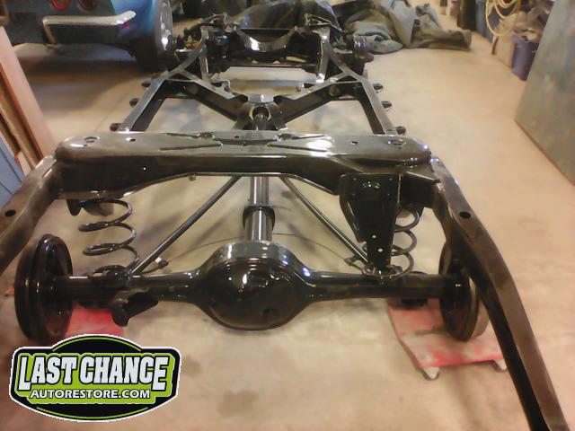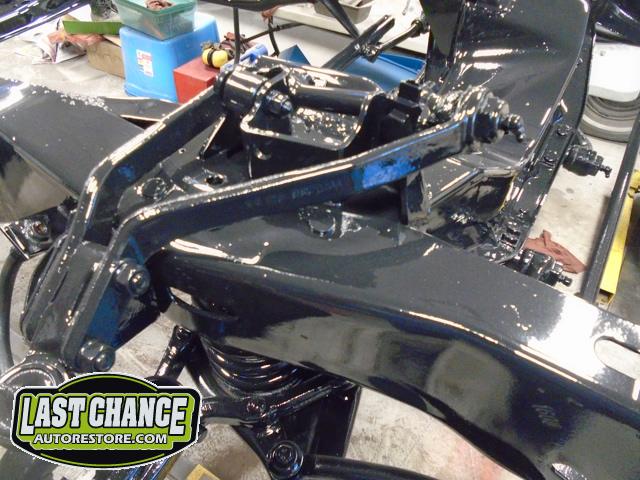 The frame and rear end assembly received 3 coats of gloss black epoxy paint. The rear end assembly was reunited with the painted frame.