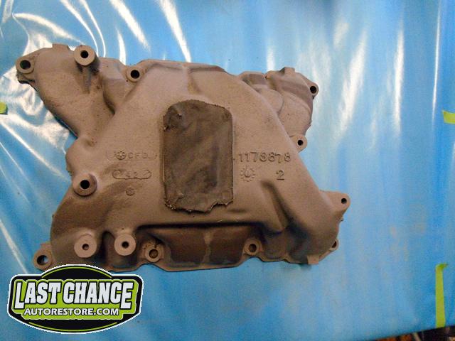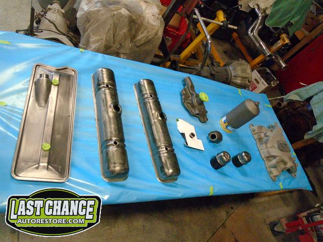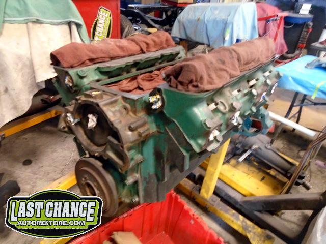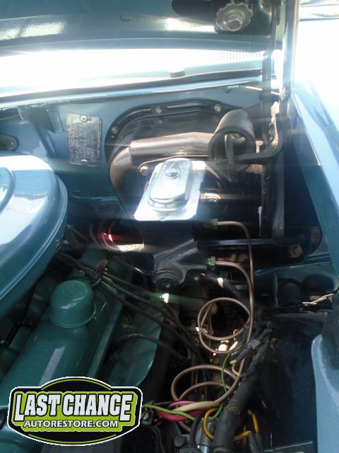 The 2 barrel intake assembly was replaced with an upgraded (and period correct) four barrel intake and freshly rebuilt upgraded four barrel (also period correct) carburetor.
