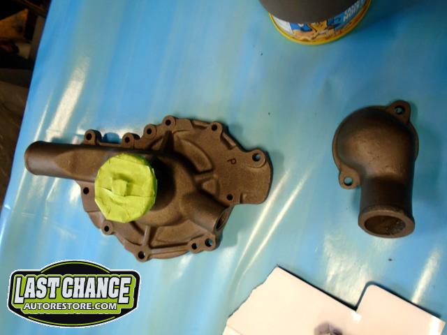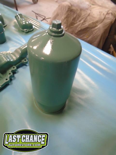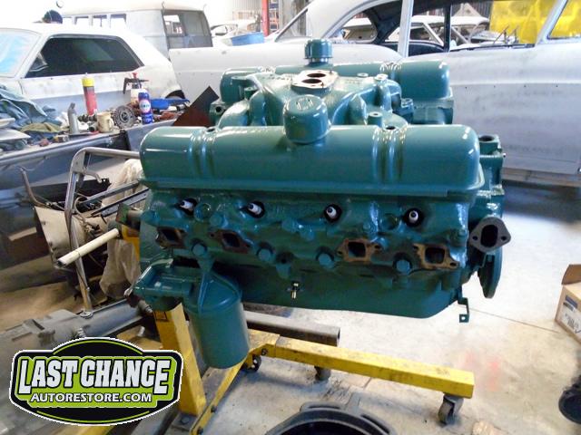 The original "Nailhead" V8 engine was partially disassembled, cleaned and degreased and received several coats of the correct Buick Green engine paint.