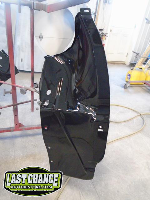 We applied 3 coats of the special finish paint ( a high quality single stage paint) referred to as "tangerine" (which is the factory correct colour).
