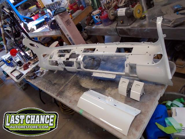 The hood, trunk, bumpers and grille were also carefully adjusted and bolted back on the car.