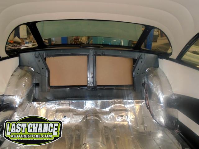 A new headliner was installed, along with all new rubber seals and gaskets before new glass was installed back in the car.