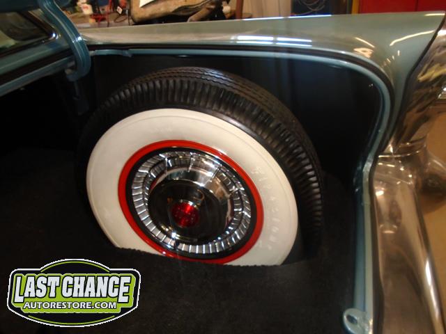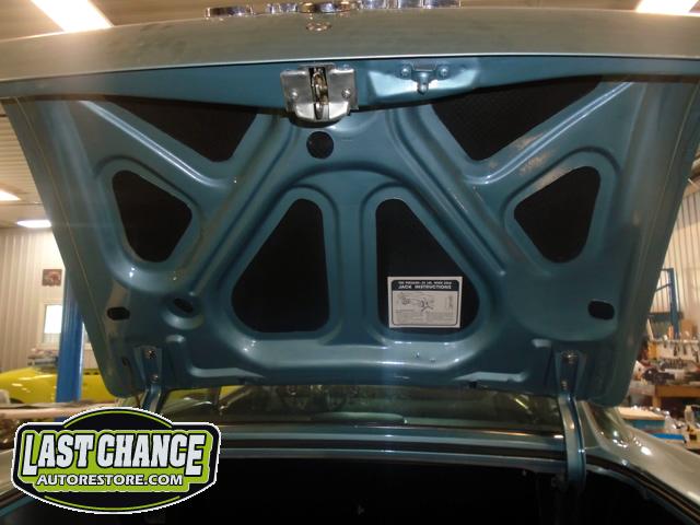 With the interior like new again, the inside trunk area was enhanced with a new custom carpet and factory correct black rear seat and trunk surrounds. The period correct jack and spare tire (with a hubcap too) was placed in the correct location.