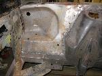 When it returned, we welded the two new quarter panels and the new front seat supports.