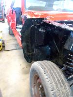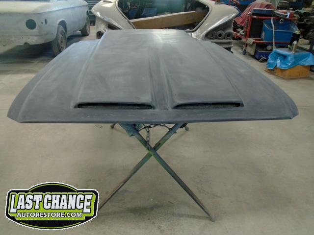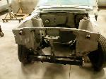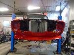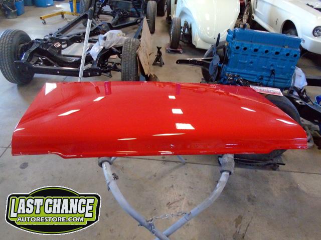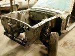 The front end section of the Mustang was repaired, degreased and media blasted. The complete front clip received three coats of high gloss black two part epoxy.