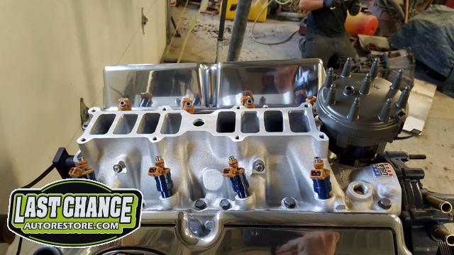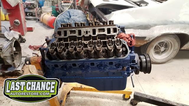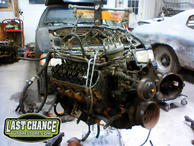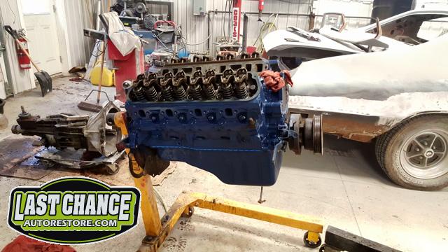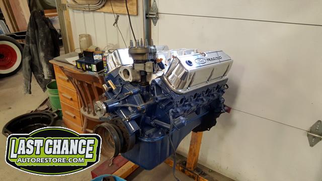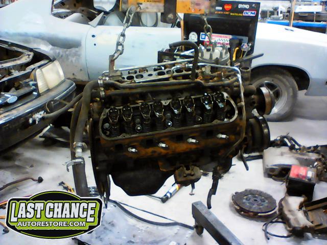 We dismantled the motor, degreased, cleaned and painted the engine block and components. The oil pan was replaced, all new gaskets installed and many new parts installed.