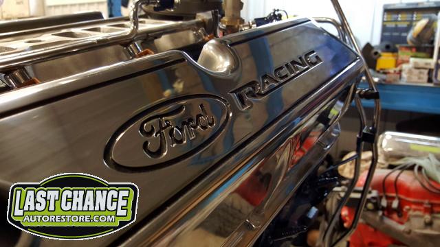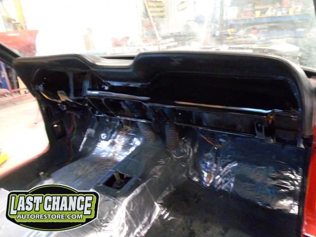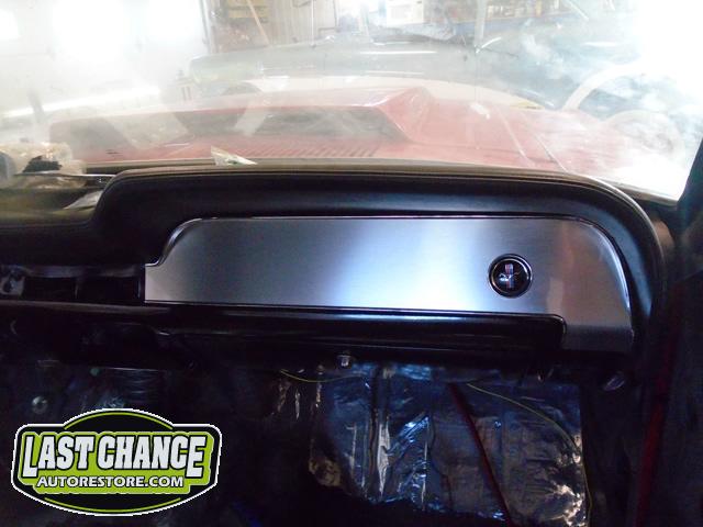 This Mustang's interior re assembly is also in progress. The rebuilt white faced cluster and dash was dry fitted and installed to the dash and a special polished aluminum dash face kit was also installed.