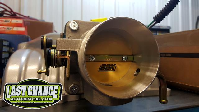 The throttle body was upgraded to a new larger (70mm BBK throttle body). The intake was upgraded with a better Edelbrock intake along with a new Edelbrock RPM Performer II. We added a nice set of high polished Hooker Headers too!