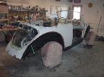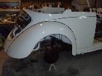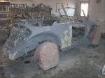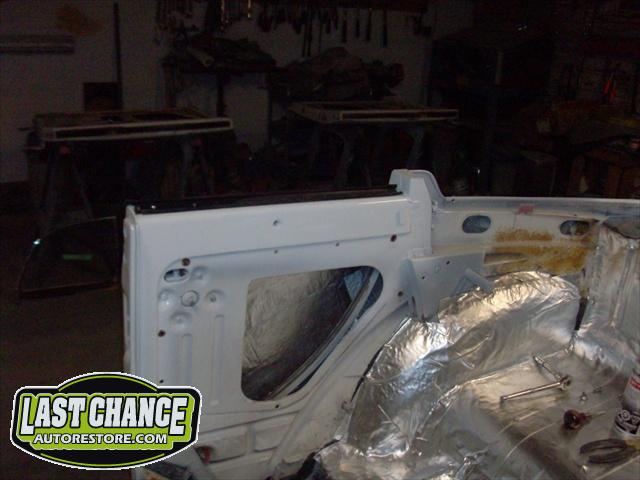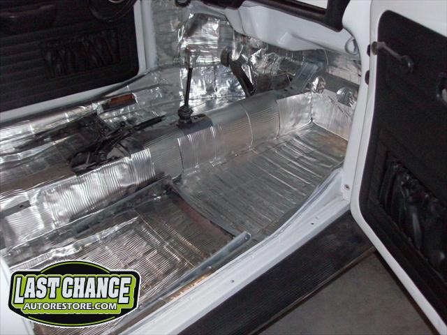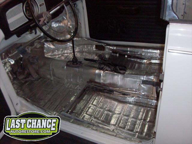 We have performed the required metal fabrication work it needed in the rear floor area & inner wheel wells, along with repair to both doors & all 4 fenders.It has received 2 coats of special "POR15" paint on both sides of the floor pans along with a top coat of rocker guard on the underside of the pans.