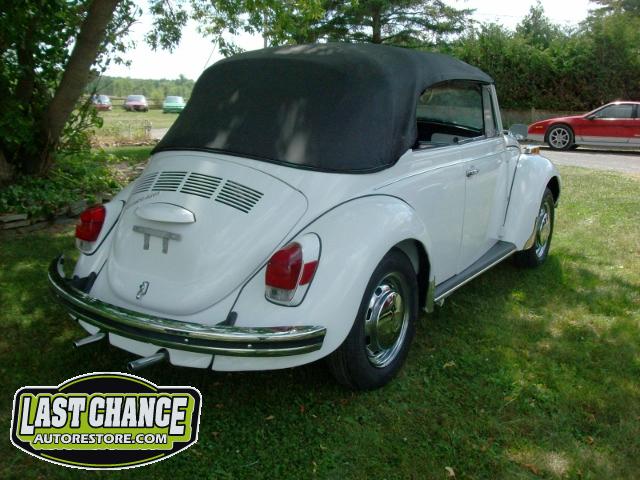The original factory colour was Orange, but we decided to paint it the most requested & most desirable colour for a Bug convertible, Pure White. We have upgraded the carpet to the "salt & pepper" pile carpeting & will retain its original colour seats of black (original look basket weave style).
