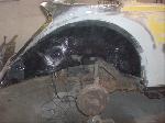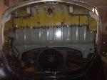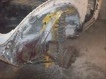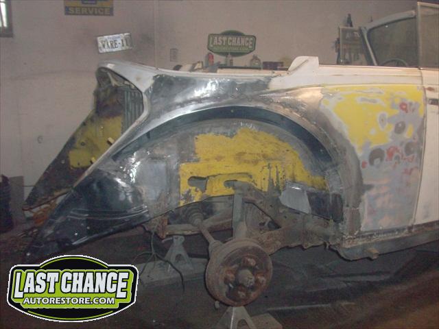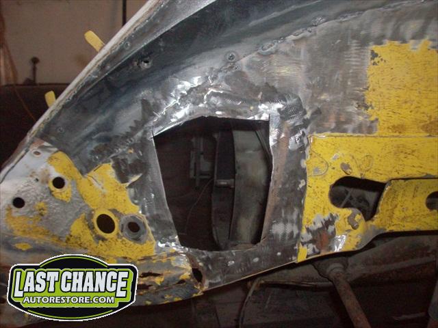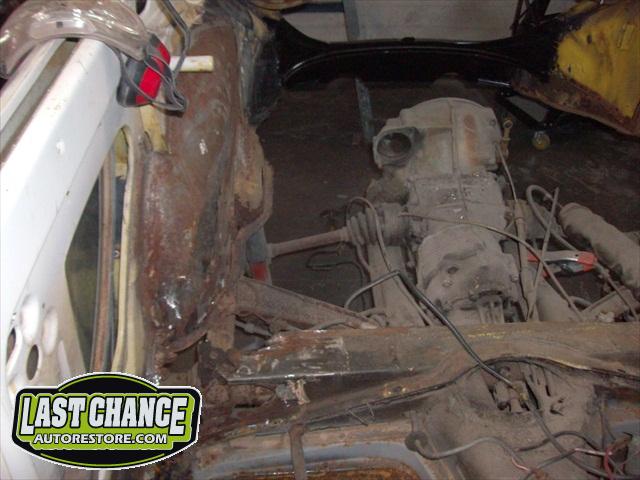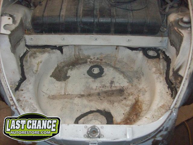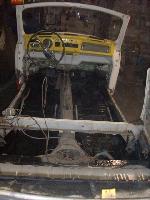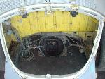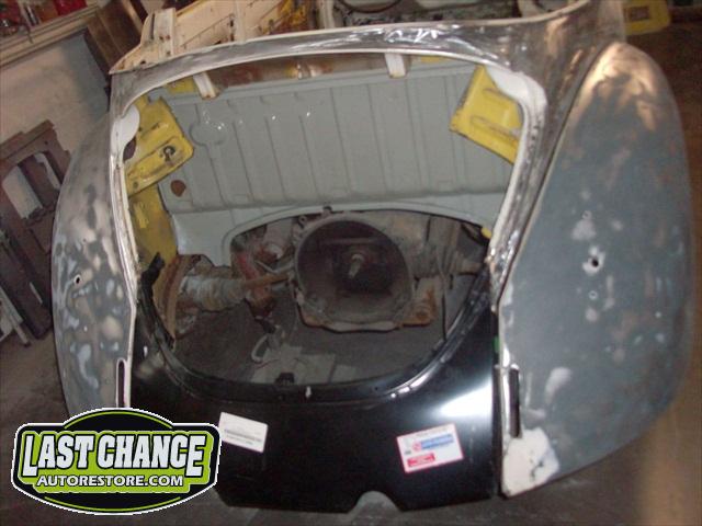 We removed the engine, along with the bumpers, lights, fenders and interior to expose the amount of work that will be required to restore her to original condition. The original colour combination was Lemon Yellow, with a black top and black interior.