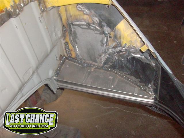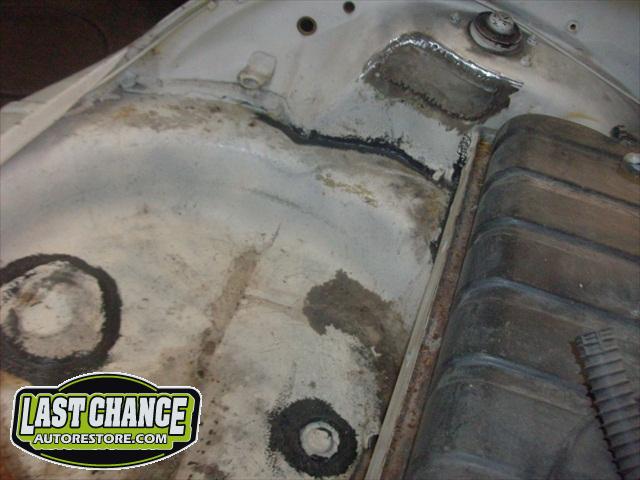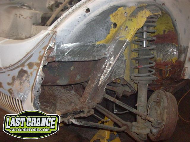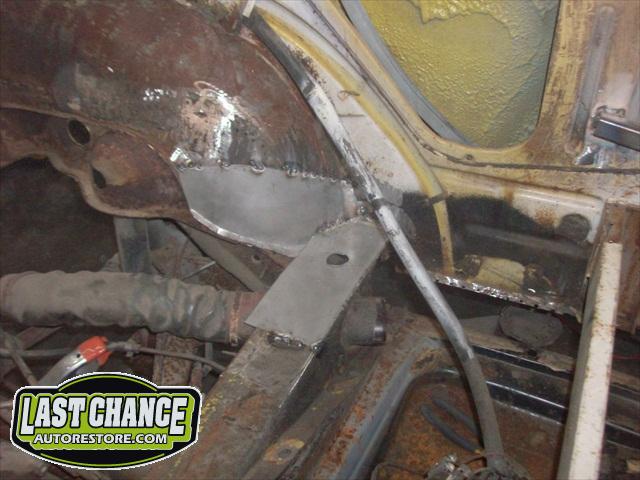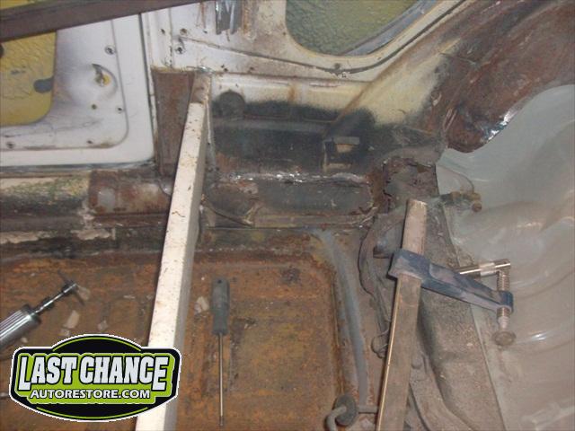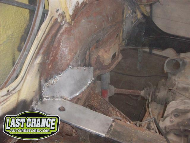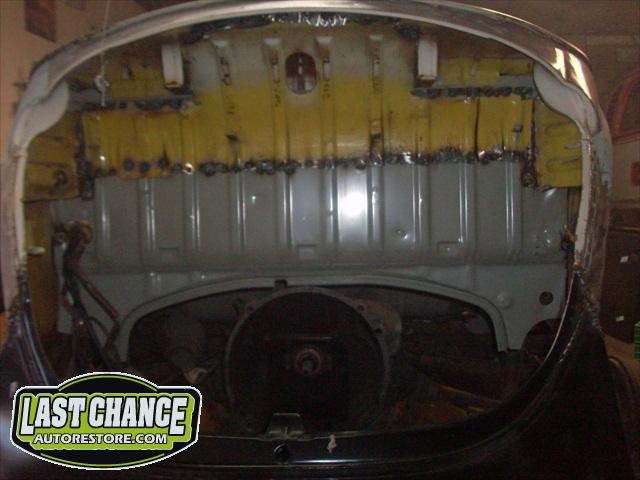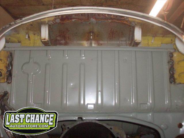 We assessed the replacement patch panels we required, and placed the metal order. The fabrication began. We started by removing the rear firewall support brackets and rotten rear parcel shelf. There was a large amount of fabrication to make Martha like new.....we replaced both heater channels and frame supports (the backbone of a Beetle Convertible). Several panels were replaced with new.
