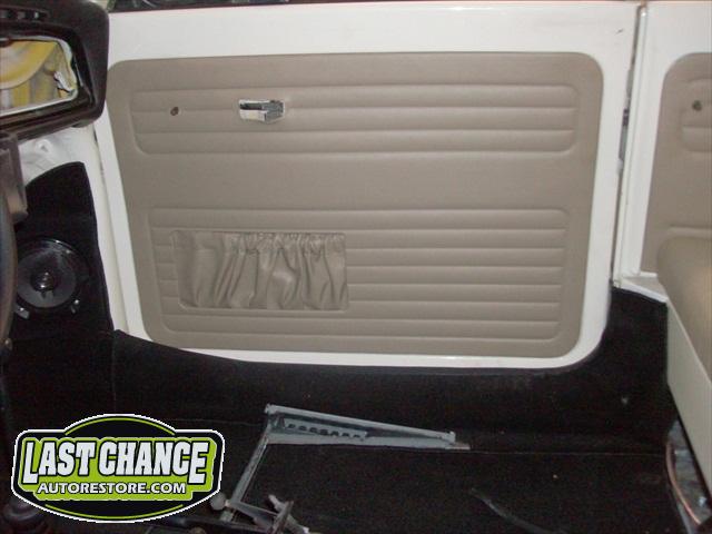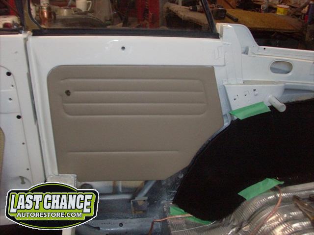 We decided to upgrade the front drum brakes to front disc brakes. We also upgraded the standard steering wheel with a "banjo wheel". The front door panels were also upgraded to "mild custom" panels.