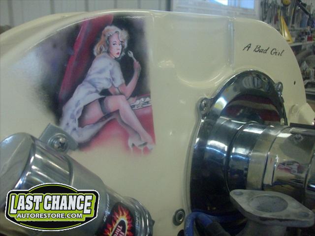 There was custom air brush artwork added to the dog house (our client had a photo from an old calendar) to personalize the beautiful motor.