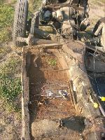 Sunny's chassis looks quite nice. She will need both floor pans (very common on Beetles). The front frame head (main front suspension structure) appears to be quite solid!