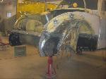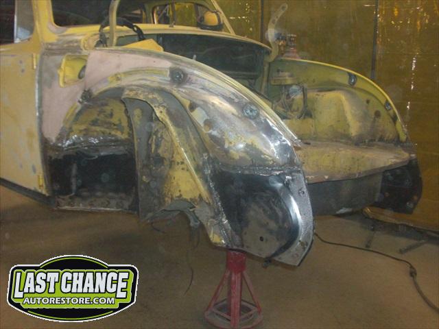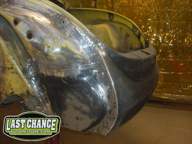 We will be able to make a material list of metal we will need to order. We noticed there may have been a collision to the driver's side front area at one time. We also noted the replacement "Mexican" rear fenders. We will need to inspect the front fenders further.