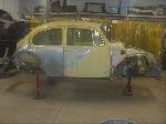 With the doors repaired and painted, it was time to prepare to install the body onto the rebuilt chassis.