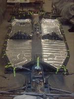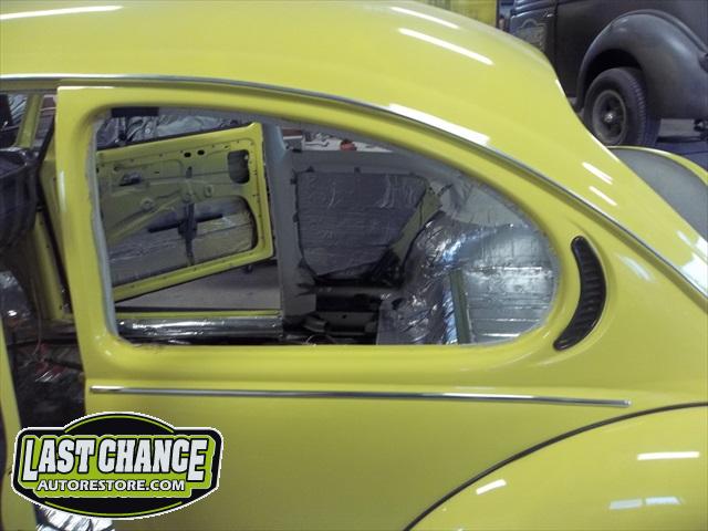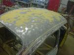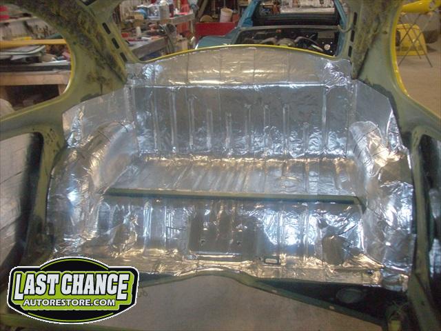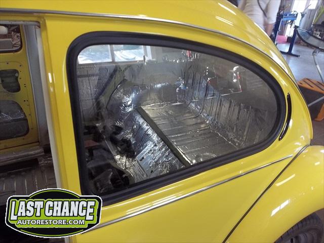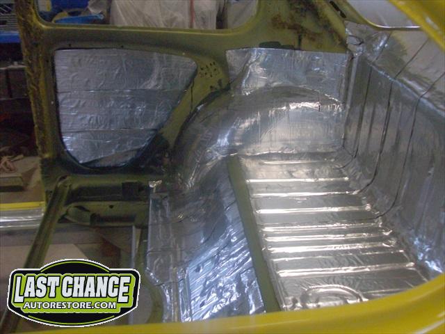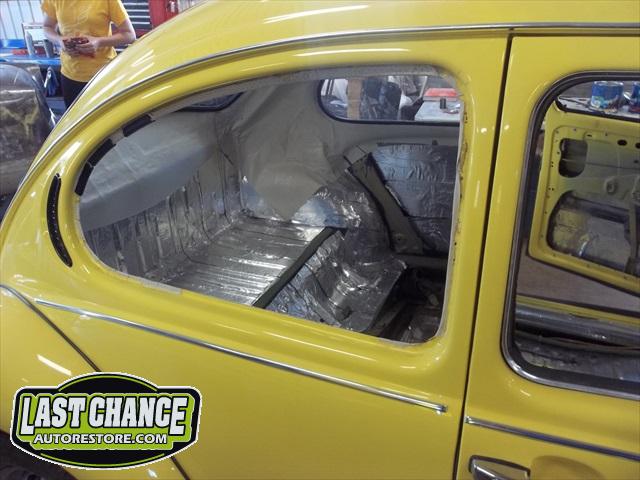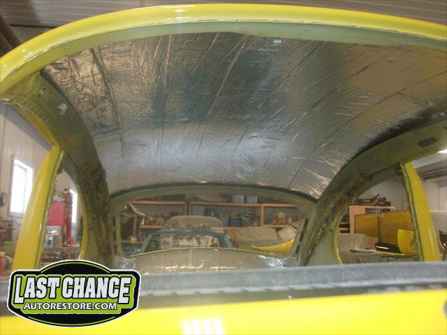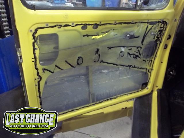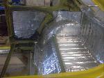 With the body bolted to the chassis, it was time for re assembly! Sound insulation was installed to the complete roof, side panels and rear parcel shelf areas of the body. Both doors also received the same treatment.