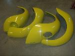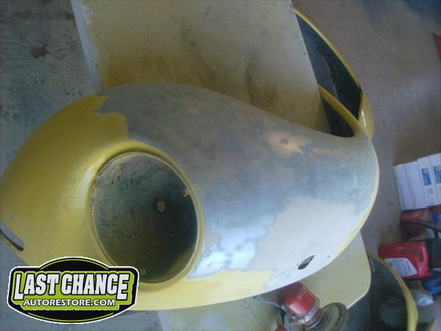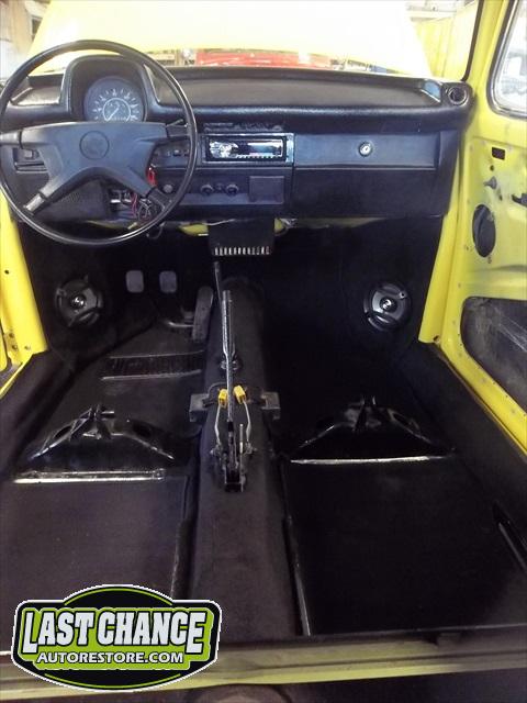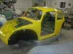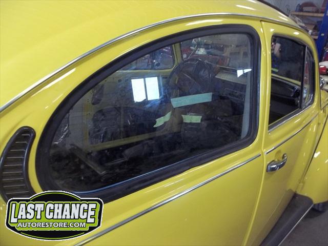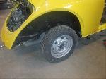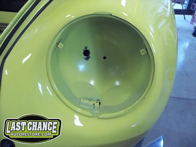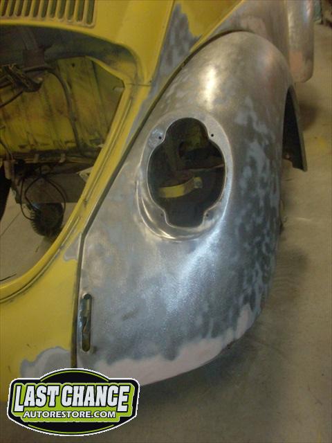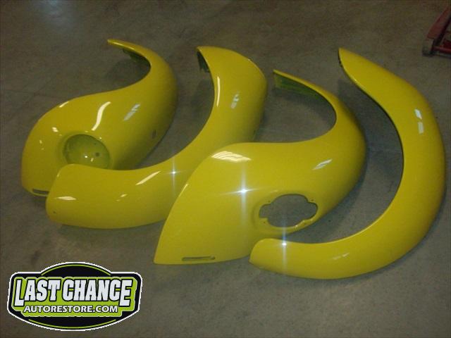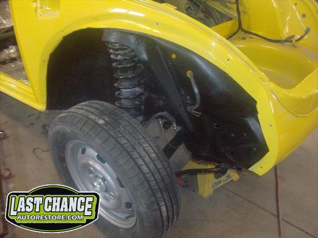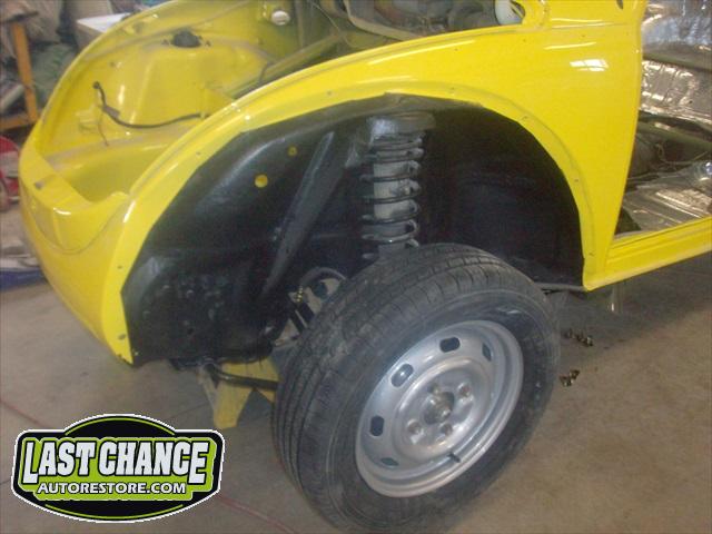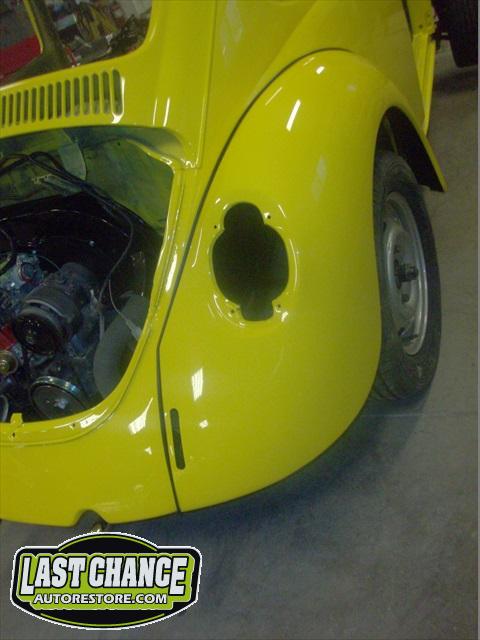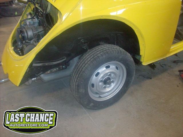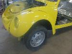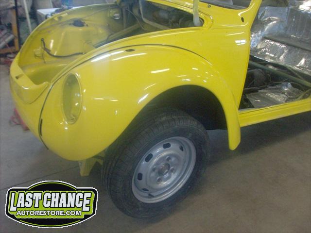 All four fenders were also sanded at all levels and dry fitted one final time before Sunny's new paint was applied. Sunny's beautiful new paint job turned out great! It is a Factory correct Saturn Yellow VW paint code is L13M.