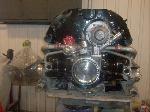 We removed the engine from the transmission. The transmission was sent out for a complete rebuild. It came back like new again. We degreased and cleaned the transmission and painted it to look as new. The engine was detailed and enhanced. (See You Tube videos)