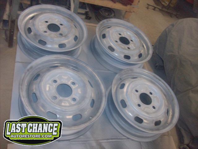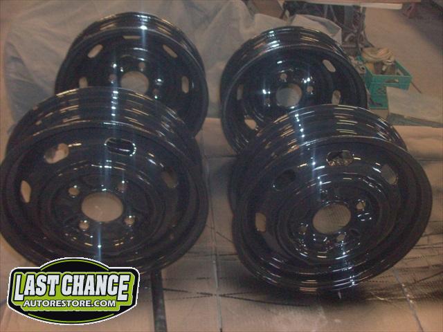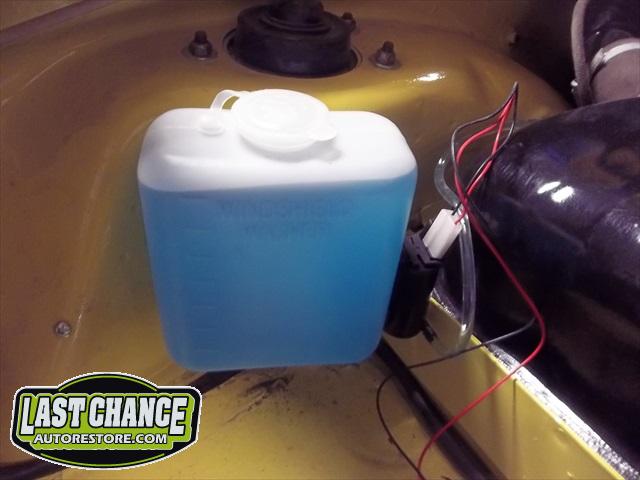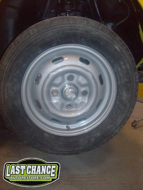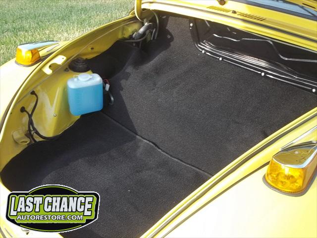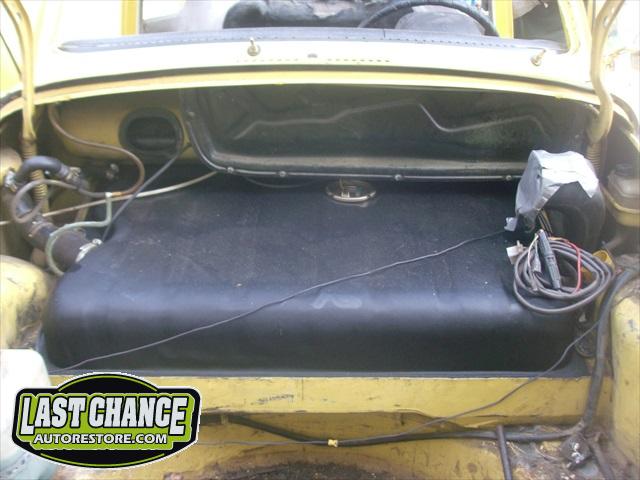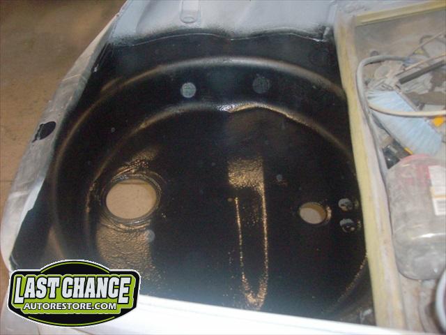 The spare tire rim was sandblasted and repainted. The gas tank (with new fuel lines and grommets) was installed and the front trunk/under hood area was treated to a special two piece carpet kit!