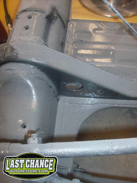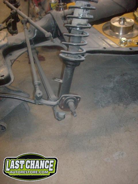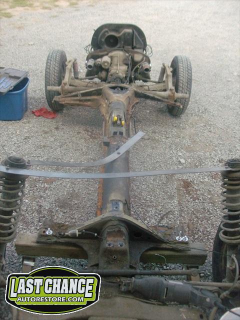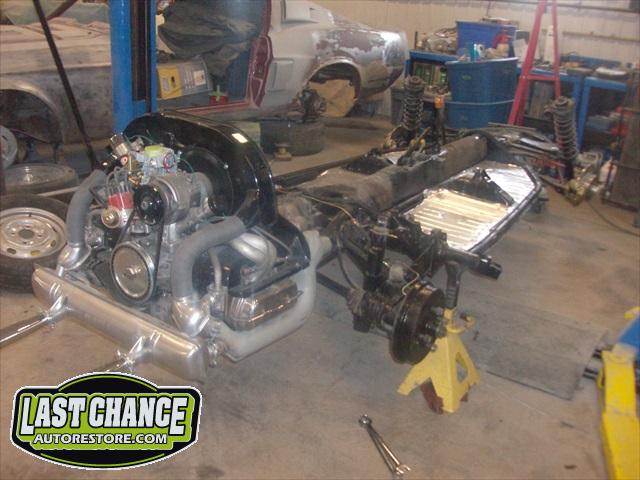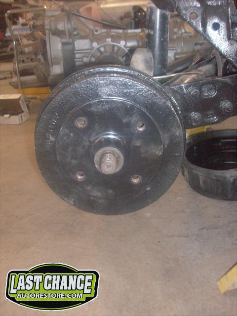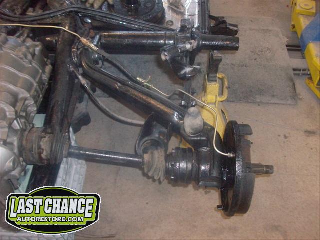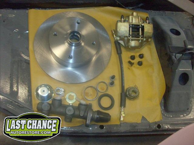 The chassis received the rebuilt transmission and the fresh engine was also installed. A new front disc brake conversion kit was installed (replacing the factory drum brakes).