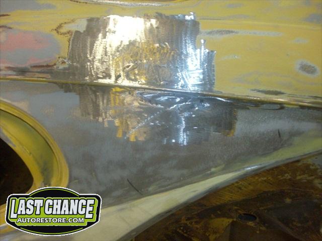 The next step was to sand the body to determine why there is such a large amount of body filler.