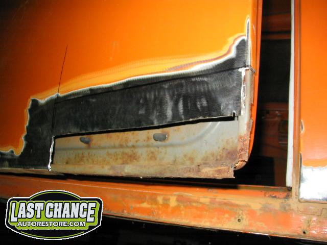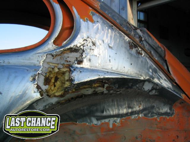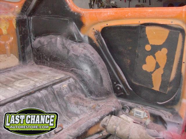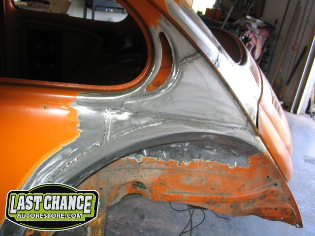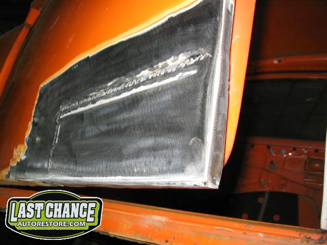 We removed the body from the chassis, and performed a large amount of fabrication. We repaired the floor pans, and welded new panels in the areas needed on the body.