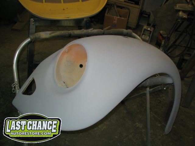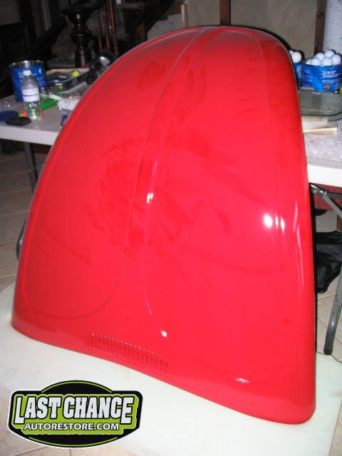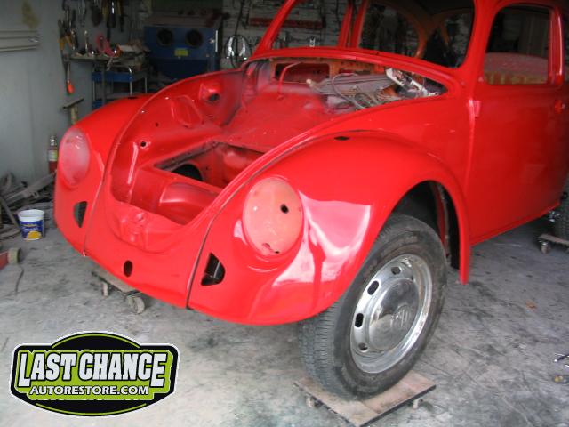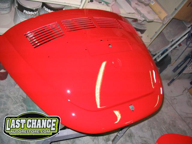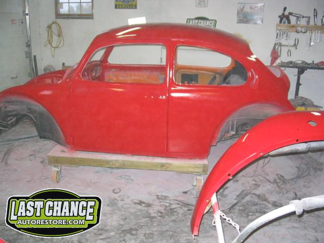 We then completed the body work & prepped the body for paint. We changed the original Orange colour with a more desirable bright red.