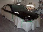 Once the body work was completed, we gave this car a very nice "flexible" body kit, made by "Xenon" along with a custom two tone paint job, Black Metallic with a custom Copper Metallic. We added a tasteful custom ordered stripe and lettering package made by 3M.