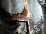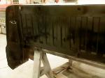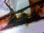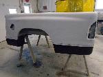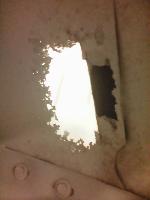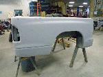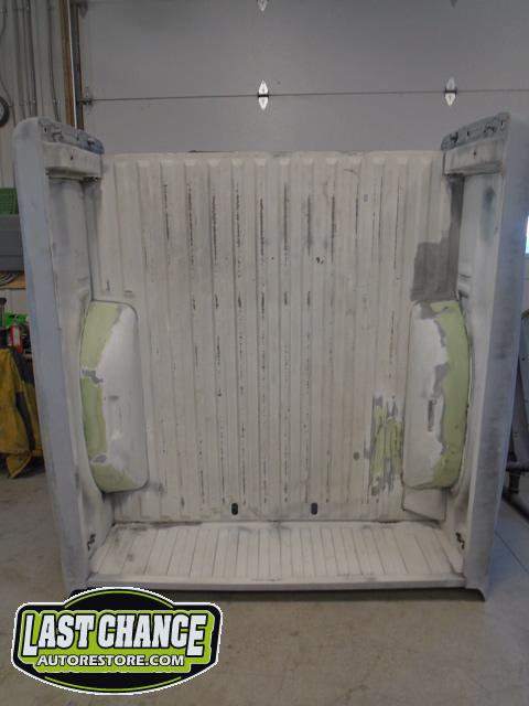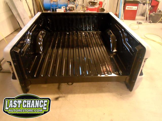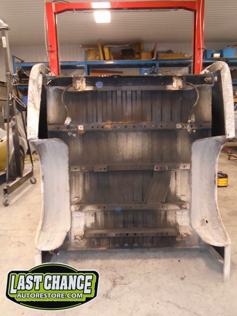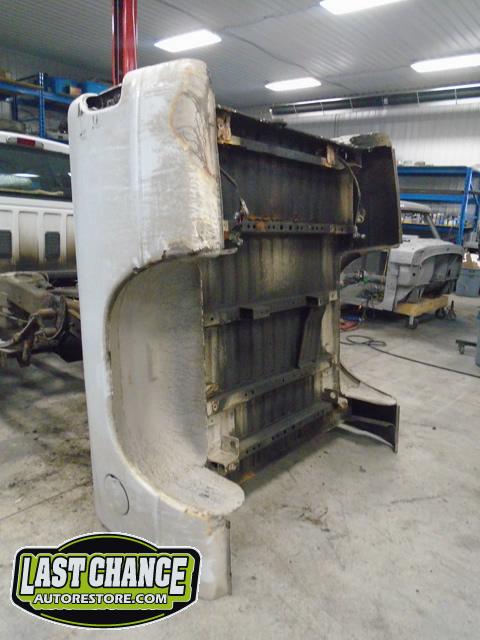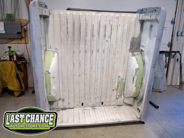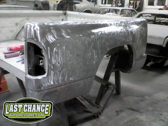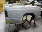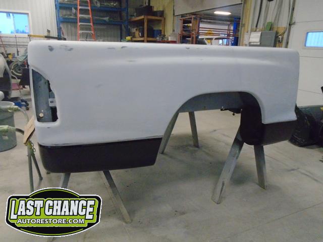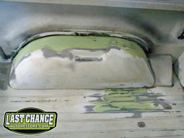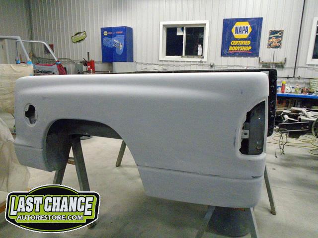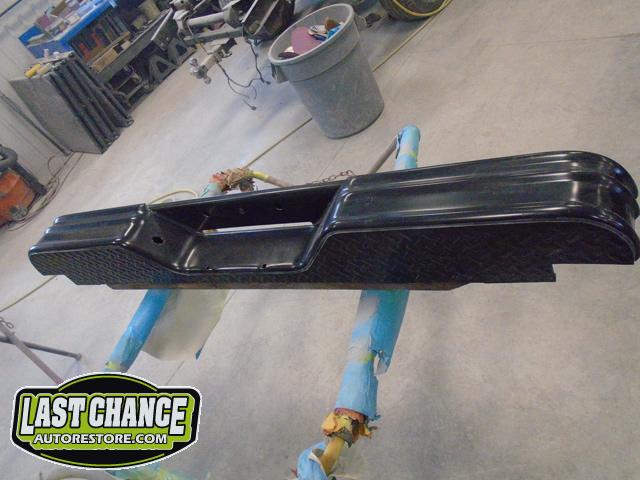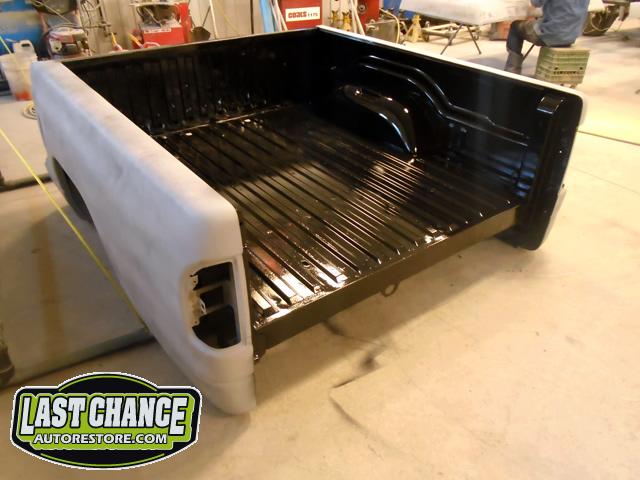 The rusty box was removed from the frame, sandblasted and several new metal patches were made, welded and installed.