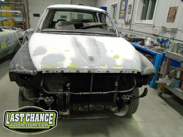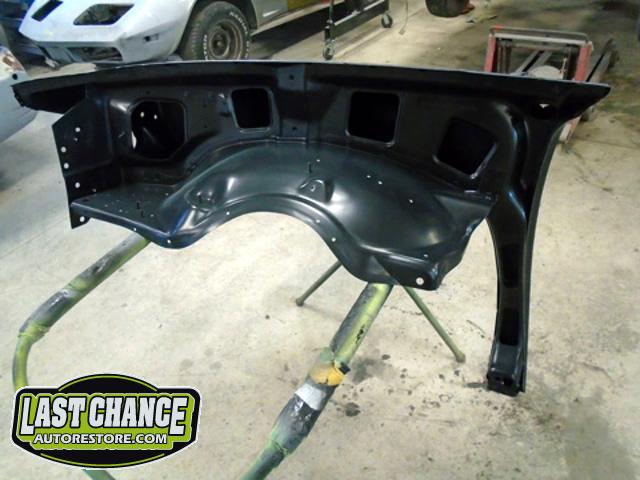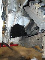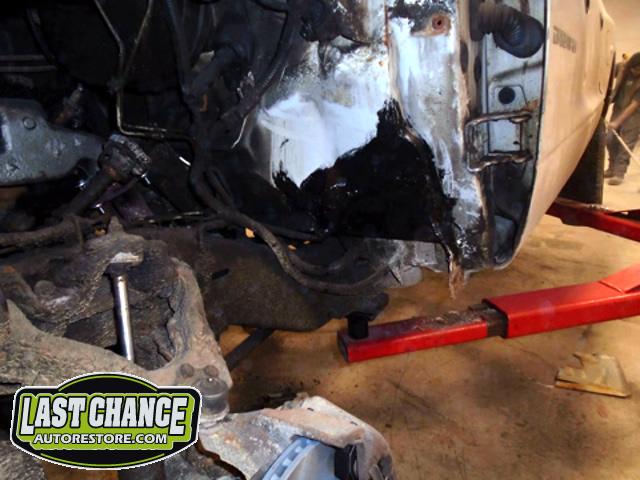 We began by removing the original front fenders and repairing holes behind both front tires (at the lower front firewall area).