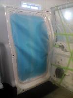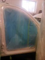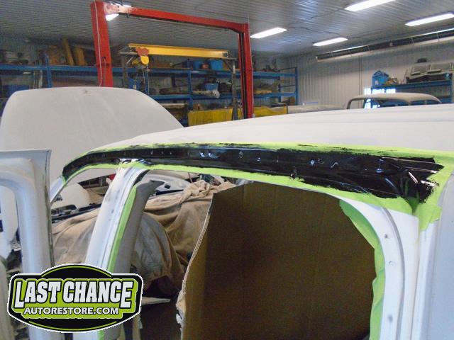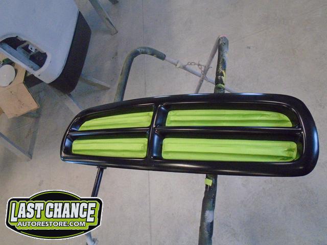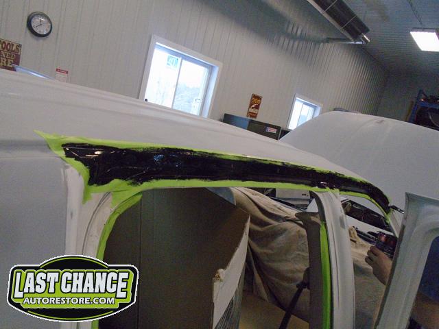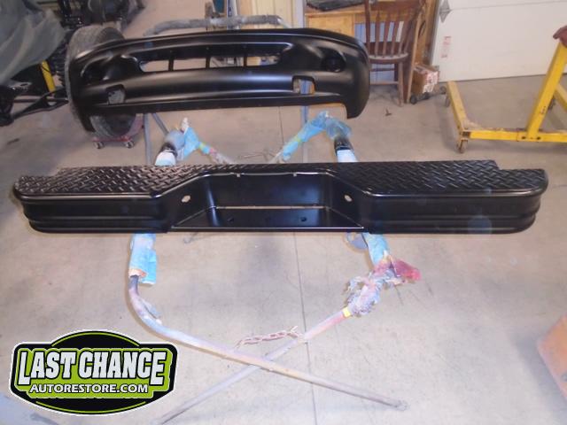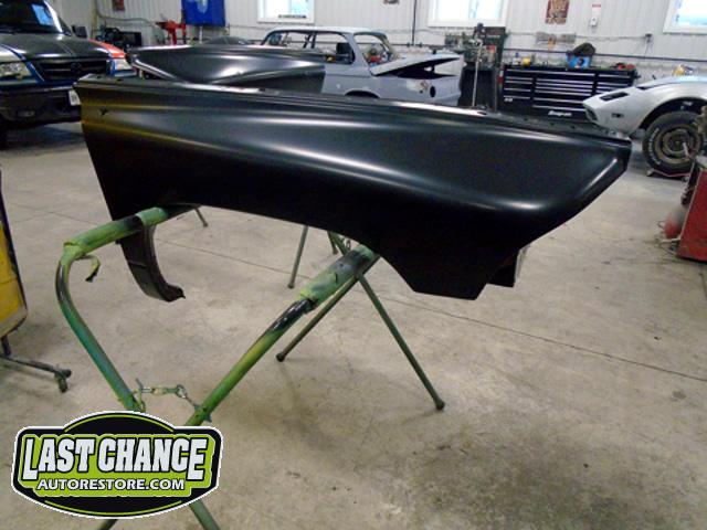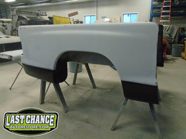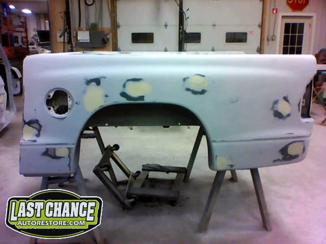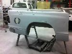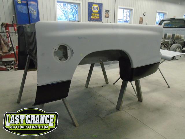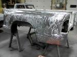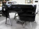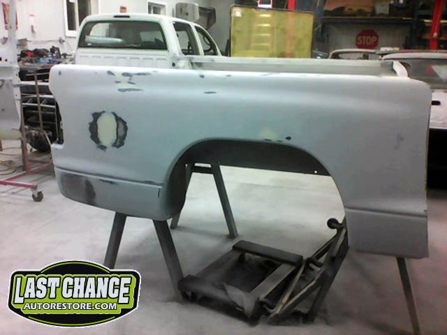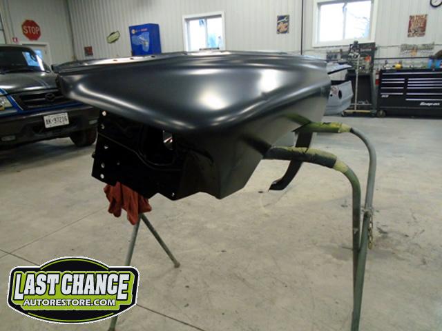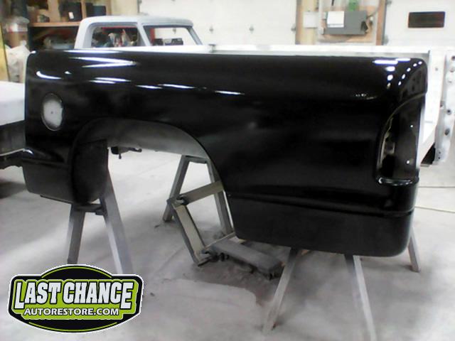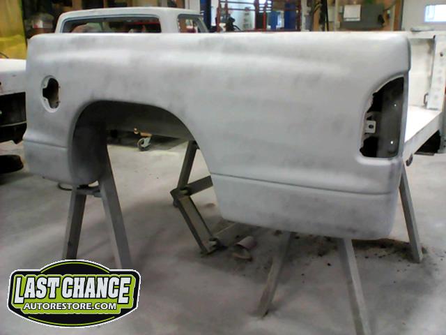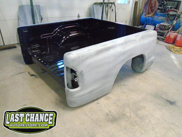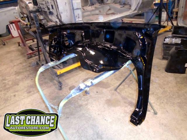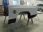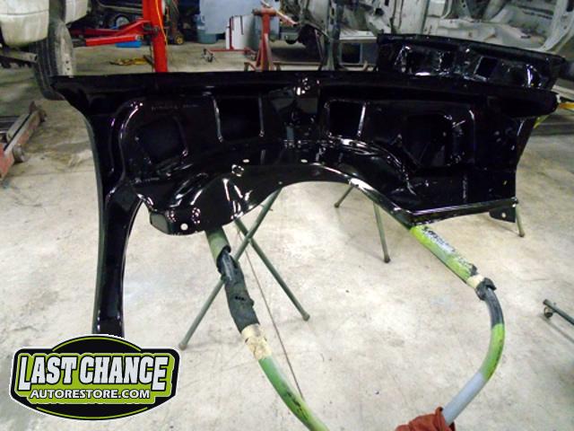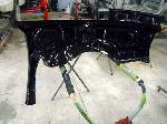 New front fenders were sanded and treated to a coat of DOM16 anti rust gloss black paint on the insides before being installed on the truck.