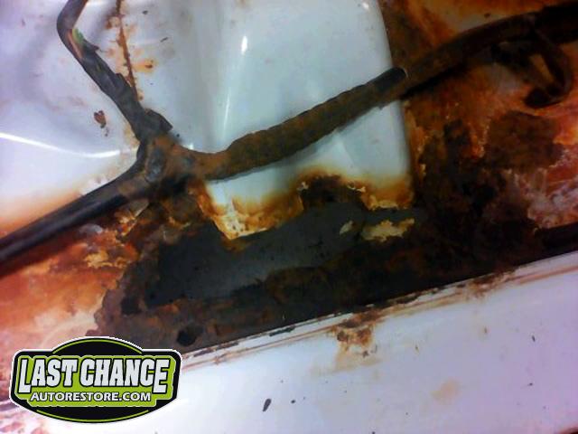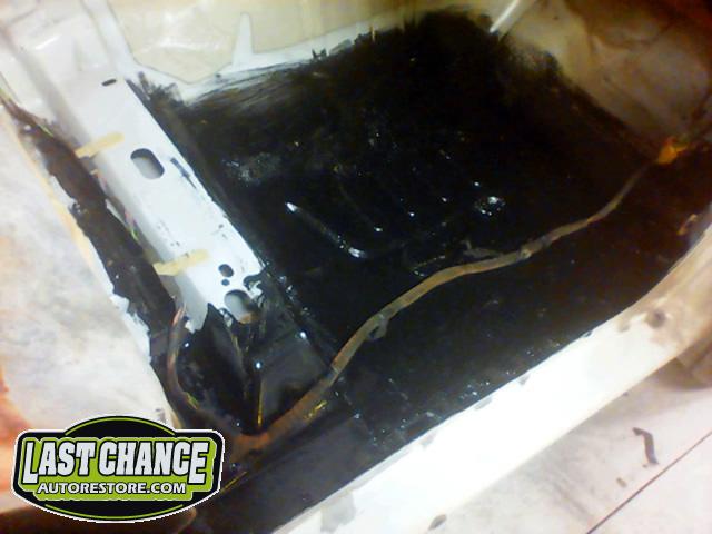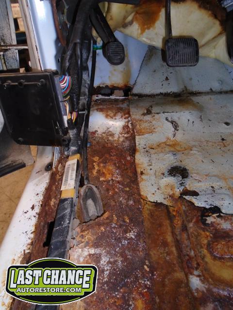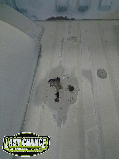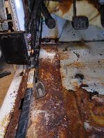 The floors on both driver and passenger sides had holes that were repaired and treated with anti rust paint.