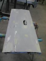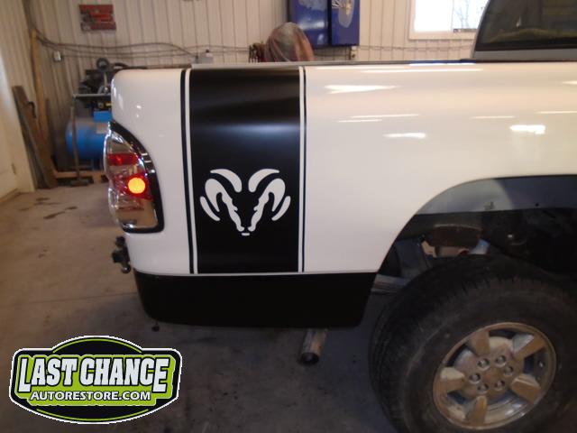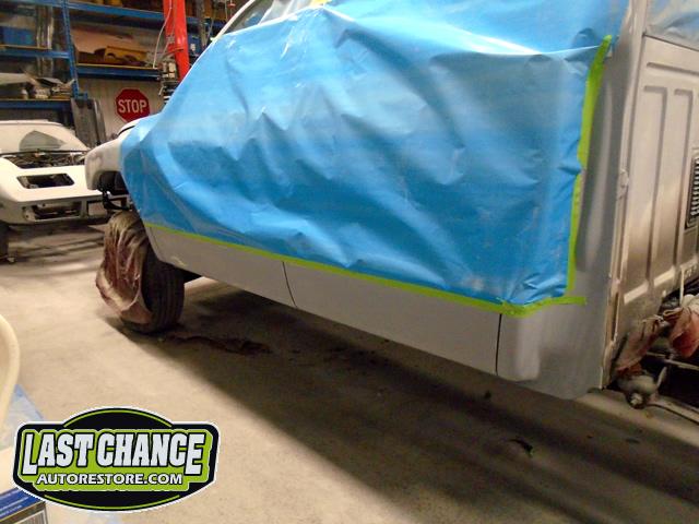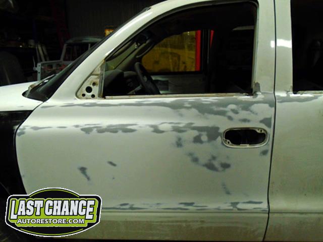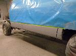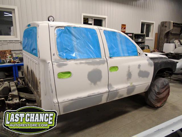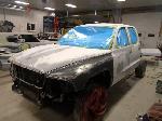 Numerous hours of block sanding and body smoothing was next. After all of the bodywork was completed, this Dakota was ready for the lower section to receive two coats of a commercial grade anti chip rocker guard.