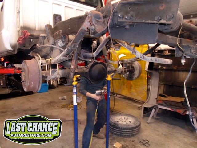 The body was showing rust in several locations (box sides and bed flares, floor pans and front fender areas).
