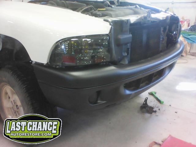 Re assembly of the Dakota was next. Custom smoked headlights, special painted grille, satin black front bumper and more.