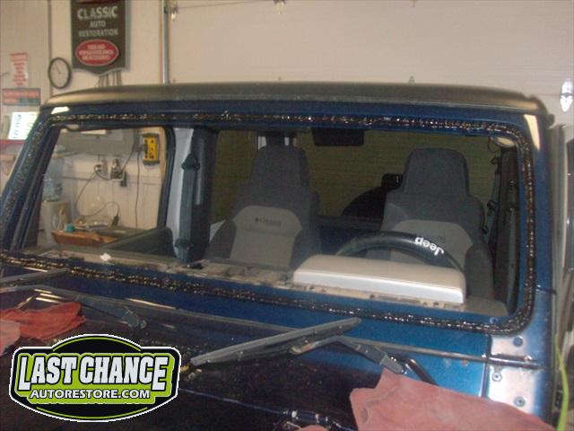 Once the old rusted frame was removed, we installed the new frame, new rubber seal and new windshield.
