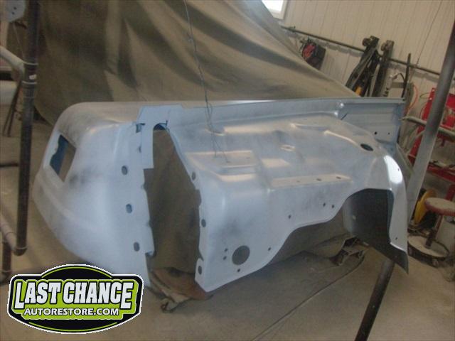 We sanded, primed and painted the body metal the factory correct Patriot Blue Metallic.