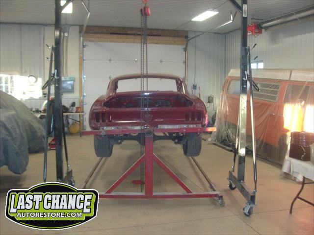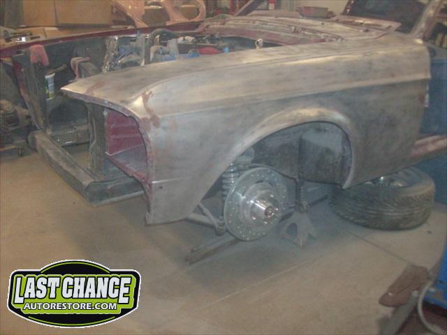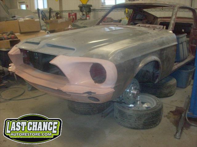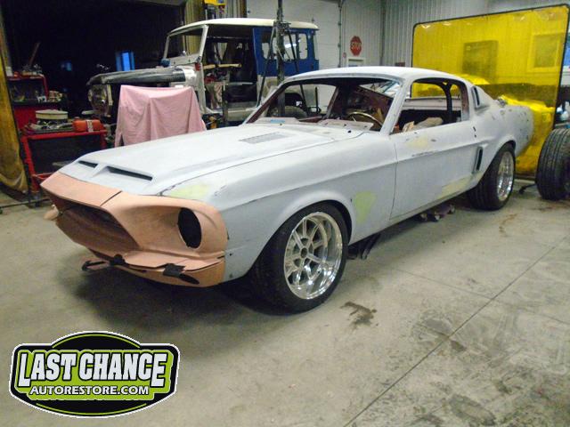 The body will be upgraded to a Shelby front hood and front facia, along with the 4 fiberglass Shelby scoops and correct rear trunk with built in rear spoiler and rear quarter panel extensions.