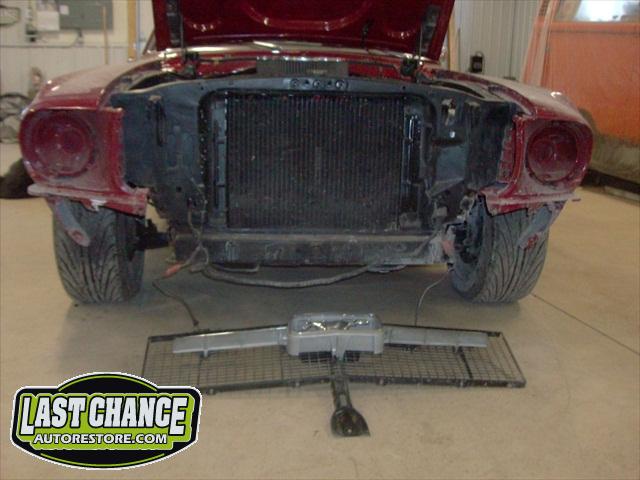 Our attention turned to the front nose area next. The Shelby headlight extensions were dry fitted onto the original front fenders. The lower bumper section was also set into place. There will be a large amount of fitting and adjusting in the front section to allow the bracing and brackets to fit and bolt to the original radiator support area.